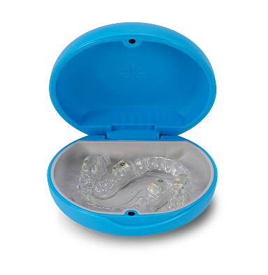 先將具有整合式咬合塊的隱適美® 隱形牙套安裝至牙齒的咬合面。